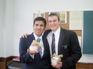 Elders Flory and Barber are sharing with me a wonderful empenada. It is good.